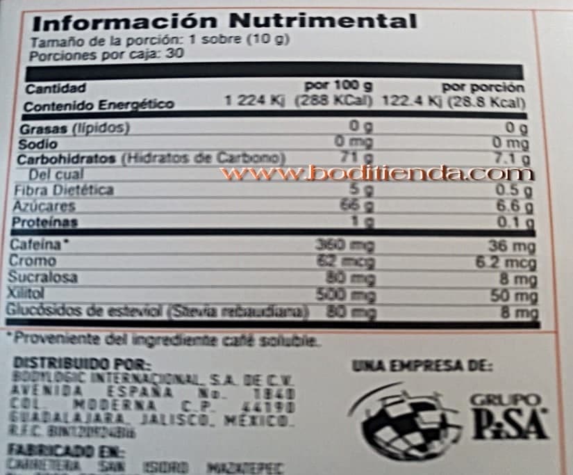 B-Coffee Bodylogic, es un delicioso café de olla soluble, en practicos sticks (sobres), que contiene semilla de café verde, hongo shiitake, cascara de naranja agria e inulina de agave. Contiene también polinicotinato de cromo que ayuda a la perdida de grasa.